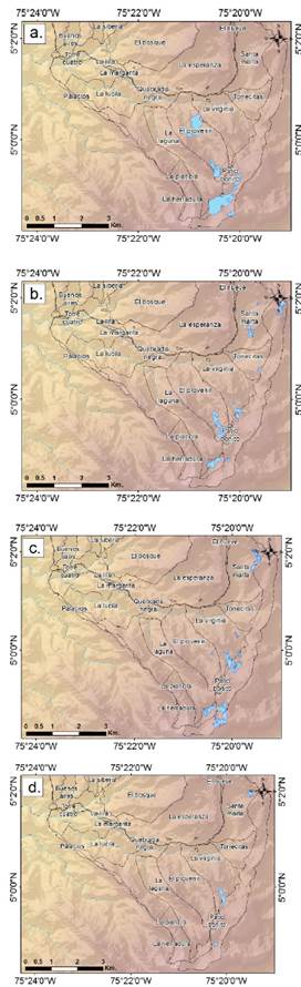 This investigation has established the evolutive process of high Andean wetlands located in the upper part of the Chinchiná river basin in the department of Caldas, Colombia, over time, via the use of Landsat, Rapideye, and radar images [10], together with anthropic and climatic factor analysis. Thus, comparisons have been established comparisons between water mirror loss and the above-mentioned factors.