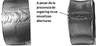 Con este análisis se determina que las Figs. 4f, 4g se sujetan a lo establecido en la norma AWS D18.1:1999 [11] en cuanto a la decoloración presente en la zona afectada por el calor. Adicionalmente no se evidencia la presencia de óxido, hierro libre o adiciones de “sugaring” en ningún caso concordando con lo establecido en la norma BPE: 2009 [12].