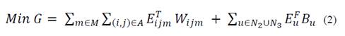 } 𝑖𝑗𝑚 𝑇 : Unitary transportation cost in the arc (𝑖,𝑗)∈𝐴 using transportation mode 𝑚∈𝑀