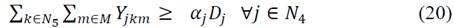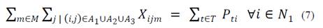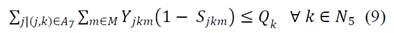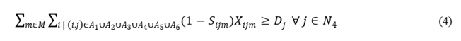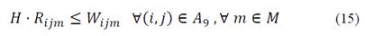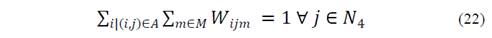 Eq. 22 guarantees that the customer’s demand is fulfilled completely from a single source by using a unique transportation mode, where split deliveries are not allowed: