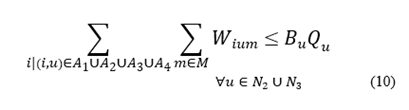 Eq. (8) limits the reception capacity of products going from the collection center to each plant: