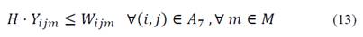 𝑊 𝑖𝑗𝑚 =1, if the arc (𝑖,𝑗)∈𝐴 is used with the means of transport 𝑚∈𝑀. 0, otherwise.