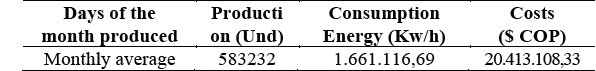 The company captures a high level of energy management, backed by the high production generated monthly, so that the following situations are assumed:
