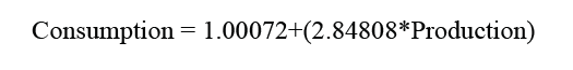 The results are adjusted to a linear model to describe the relation between Consumption and Production, obtaining the following equation of the model: