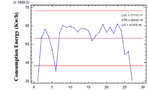 The Fig. 6 shows the individual chart for the Electric Power Consumption (Kw/h) variable for the first half of 2016, by using Statgraphics Centurion software.