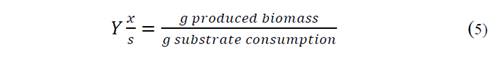 The biomass yield coefficient was calculated for each microorganism used eq. 5 [13]: