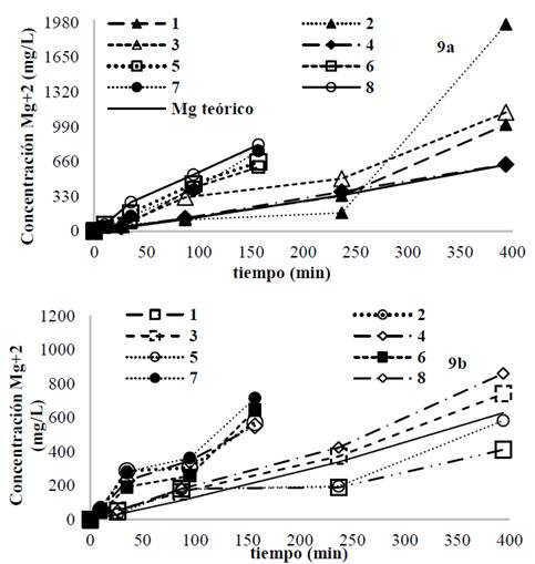 La cinética de electrodisolución de magnesio para todas las condiciones de proceso, se determinó ajustando los datos de concentración de magnesio vs tiempo a la ecuación (19), según lo reportado por Panaiotova [20]: