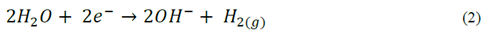 La reacción catódica correspondiente a un medio ácido y a un medio alcalino es como sigue, eq. (1)-(2), respectivamente: