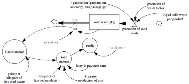 The operating costs of the company are differentiated by the areas of interest identified in the structure of the proposed model. The income is given by sales of products and green income, which corresponds to the total income. The profit is equal to the total income minus the total costs.