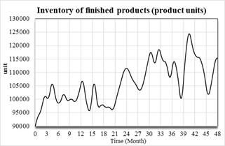 With respect to the inventory of finished products (Fig. 7), it is observed that these are accumulated despite the fact that there is a constant dynamic of products being dispatched.