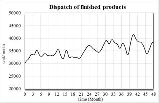 The products which are in the inventory of finished products are sent to customers based on the maximum time of permanence in the inventory, which is 3 months. The dispatching of finished products (Fig. 8) has a consistent behavior with the inventory of finished products, since the shipments depend essentially on the quantity of products that are in the inventory, the time of permanence, and the client’s requirements.