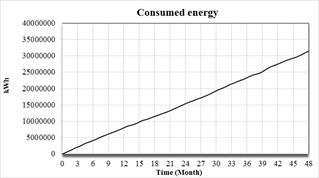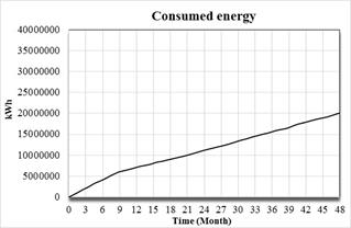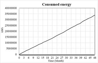 When a consumption goal of 6 million kwh (the reference value of the company from which the energy saving technology is applied) and a saving factor of 0.1 (Fig. 10) are established, it is observed that the slope changes to a lower value compared to what is observed in Fig. 9.
