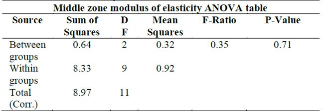 Table 4.: ANOVA Statistical analysis for the elastic modulus
