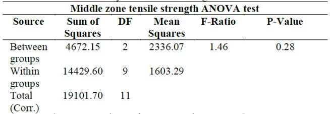 Table 5.: ANOVA Statistical analysis for tensile strength.