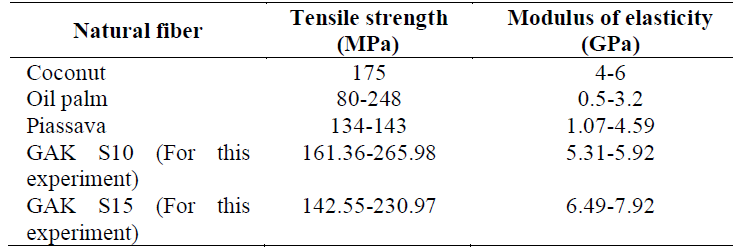 Table 8.: Natural fibers with inferior mechanical properties compared to what is found in this research.
