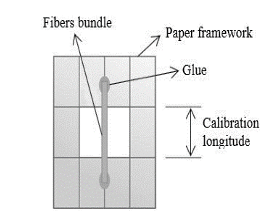 The treated and untreated bundles of extracted GAK fibers were separated manually. Subsequently, the test tubes were prepared for mechanical tests under the ASTM D3822-14 standard, as shown in Fig. 3[18]. The calibration lengths used in the first and second experimentation stages were 10 mm and 15 mm, respectively. The apparent diameter of each fiber bundle was calculated by the projected profile technique [1] using a LEICA microscope at a magnification of 50×, supported by the IQMATERIALS software.