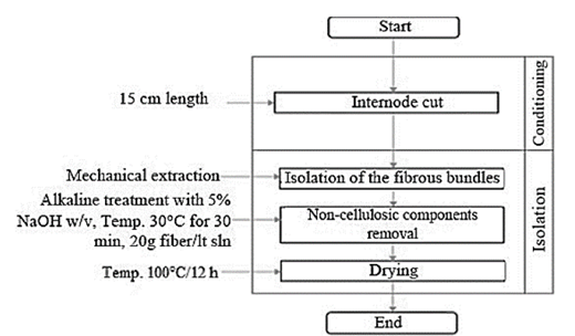 Fig. 4 denotes a flowchart of the extraction process and chemical surface treatment of the fiber bundles.