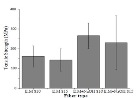 Figure 8. : Tensile strength obtained before and after the chemical surface treatment.