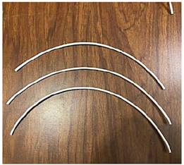 The Plastic-profiles can be made off with recycled plastic material coming from commercial plastic bags, See Fig. 2 where extruded Plastic-profiles are shown. In Table 6, is clear that the deformation of the Plastic-profiles is greater than that experienced by the PET-profiles given in Table 1. In fact, the tests carried out under controlled laboratory test conditions proved that "Plastic-profiles", with circular cross-section, resist a certain tensile strength capacity without reaching their rupture, it means that the Plastic-profiles are working in the plastic zone area.