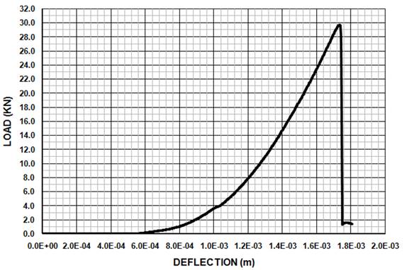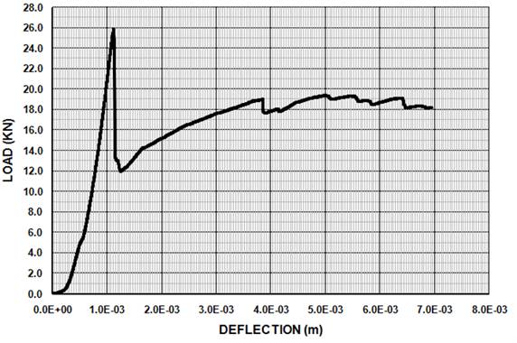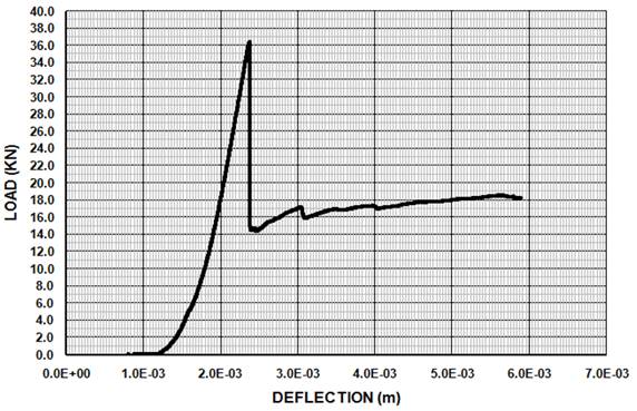 Figure 5: Load-Deflection for a simple concrete beam loaded in the middle third of the clearing. NMX-C-191-ONNCCE [15].