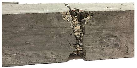 According with NMX-C-191-ONNCCE [15], the modulus of rupture is a material property obtained to determine the flexural strength of the concrete by the bending test of a beam. There are two types of failure in terms of the rupture modulus, when the fracture is presented in the middle third of the clearing, see Fig. 4 and when the rupture is not presented within the middle third.