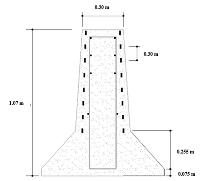 Safety barriers with PET-profiles matrix is an initial prototype as a proposal that need to be studied in detail, see Fig. 10 and 11. The initial model has PET-profiles placed in a bidirectional matrix where PET-profiles are settled with 0.15 m between each one following the vertical direction of the cross section, this arrangement is an initial purpose thinking in easy enabled and placed inside the mold of the safety barrier. For future investigations, it is recommended to conduct impact studies to determine the effectiveness of the proposed model and determine the release of energy as presented in the prototype. Therefore, the PET-profiles inclusion in the concrete can be useful in structural support for road safety barrier where the car impact can spread small concrete fragments and the PET-profiles or PET-threads could keep the concrete fragments confined.