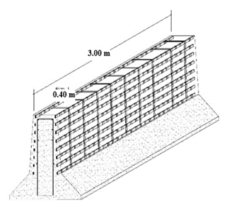 The concrete was designed with a specified compressive strength of (f′c=30MPa) . The compressive strength of concrete is measured to ensure that the concrete satisfy the quality control. To measure the compressive strength of the concrete, cylindrical-test specimens of 0.15 x 0.30 m are prepared and stored until the concrete hardens. The whole testing procedure was carried out in laboratory test conditions following the standard codes, see [13-15].