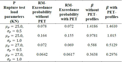 From Table 11, it is possible to see an increase of reliability (β) for specific values of P, coming from expected forces for particular compressive strength of concrete in specific tested beams. And also low reliability β-values are referring to the tension cracking condition from the fact that this condition is not preventable. However, it is more important to be concentrated in the difference between beam’s reliability indexes (β) with and without PET-profiles. The differences are mainly what this work is about.