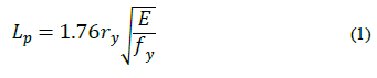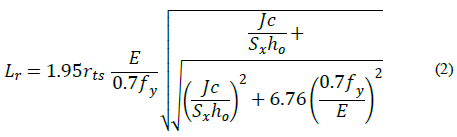The I-shaped steel beams satisfied the permissible tolerances in the cross-section and longitudinal straightness (camber and sweep) in accordance with ASTM A6/A6M [22]. The laterally unbraced length between the plastic and inelastic buckling zones (L p = 0.69 m) and between the inelastic and elastic buckling zones (L r = 2.40 m) were calculated according to the requirements outlined in ANSI/AISC 360 [21] using eq. (1)-(3).