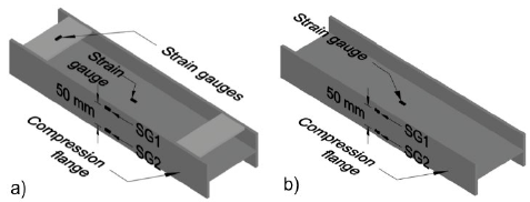 Additionally, strain gauges were installed in the half of the specimens’ length with and without stiffeners as shown in Fig. 9a, 9b, respectively.