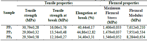 Table 5: Characterization of mechanical properties of the polypropylene matrix.