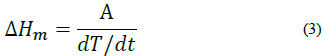 The area corresponds to the calculation of the integral of the heat flow (dt(T)/dt)) along the melting interval (T 0 →T f ), as follows eq. (4):