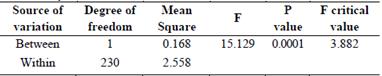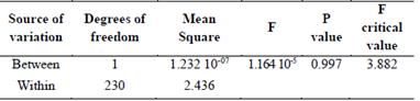 Table 2: Variance analysis of measured VWC and EC-5 estimated VWC, calibrated by laboratory equation.