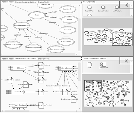 Figure 8: cStores feature model; and cStores domain component model (using VariaMos).