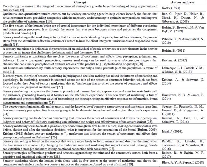 Then a synthesis is made about the definition of the sensory marketing concept in the main bibliometric analysis documents, which is presented in Table 1.
