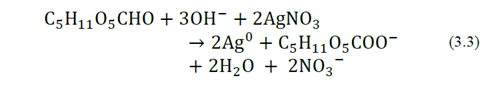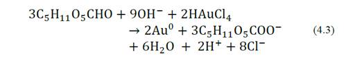 In addition, it was possible to show that as of a certain volume of sodium hydroxide is possible to obtain gold and silver nanoparticles. This chemical behavior can be expressed in eq. (3.1) - (3.3) for silver and eq. (4.1) - (4.3) for gold, where is necessary the oxidation of number of glucose moles for the reduction of a particular number of salts precursors moles.