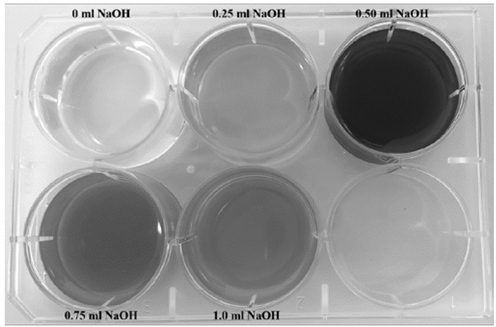 Figure 6: Silver nanoparticles at different volumes of sodium hydroxide.