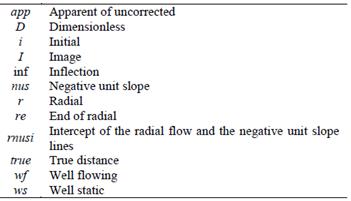 Where rnusi stands for radial negative unit-Slope intersection. Replacing the dimensionless quantities given by Eqs. (11) and (13) in Eq.(24) and solving for the well-to-discontinuity distance yields the following: