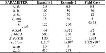 Table 1: Reservoir and fluid data for examples
