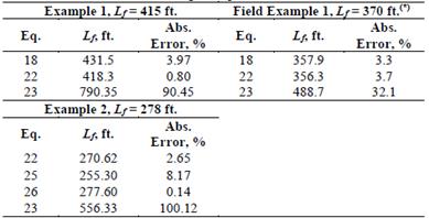 Table 2 provides the deviation error obtained for the working exercises. The proposed equations provided error values lower than 4%. The higher error was obtained from Eq.(25), which uses any point on the negative unit slope line.