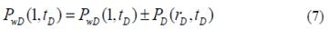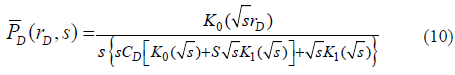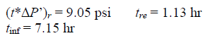 The ( symbol in Eq. (7) considers the solution for either the fault or constant-pressure boundary. When the sign is positive, a sealing fault is near the well. When the sign is negative, a constant-pressure boundary is then set, and radial stabilization characterized by a negative-unit slope in the pressure derivative curve is presented once the constant-pressure boundary is felt by the transient wave. Radial stabilization has been characterized by [11] and [12]. The two terms at the right side of Eq.(7) are defined by the following: