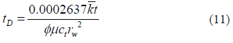 It is also shown in Fig. 6 that the radial flow regime ends at a dimensionless time of 0.2077, meaning