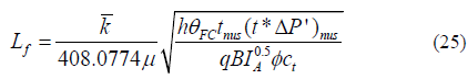 Where (L f ) app is the apparent or uncorrected well-to-fault distance found for the isotropic system case. Estimation of well pressure behavior is obtained once the image well location is determined. The denominator of Eq. (6) can be read from Fig. 9 by [23]. [15] provided a general solution, including wellbore storage and skin factor, for a well near either a sealing fault or a constant-pressure boundary. This solution avoids setting many well images.