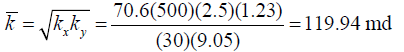 Reservoir permeability is found with Eq.(27), and the anisotropy angle factor is found using Eq.(19):