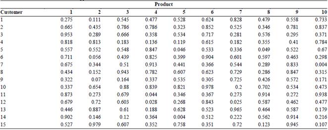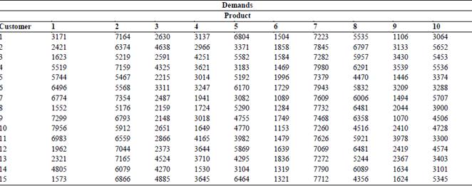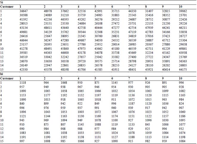 The collaboration approach presented in this article is applied in the collaborative distribution process of 15 organizations in the city of Medellin, Colombia. These companies are located in the midtown area and are part of the food industry. 10 different products that are supplied from the same provider were selected for the analysis. The demands of each product for the 15 customers are presented in Table 1. As mentioned above, the supplier is in charge of consolidating and managing the information under the VMI strategy [29]. Table 2 presents the holding and individual ordering cost for each product in every customer. The fixed ordering cost is equal to 150,000.