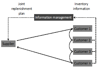 In the individual approach a single replenishment plan is produced for every customer. In this case collaboration occurs only between a single customer and the supplier, and the inventory information of the other customers is not considered for determining the replenishment plans. In this sense the replenishment plan for every customer is also established by the supplier following the VMI.