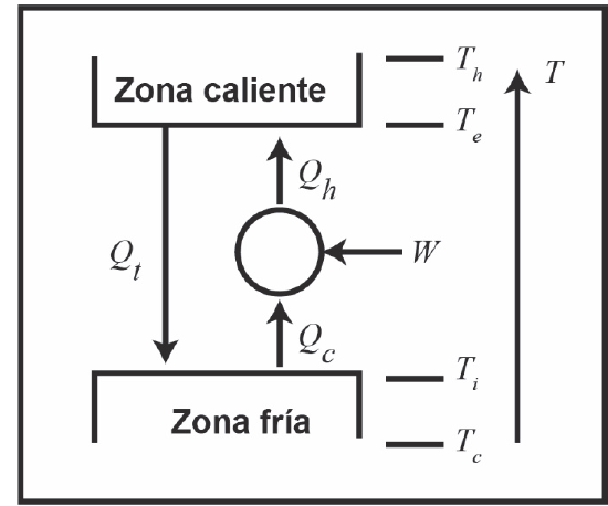 In the above equation, the term T C N S is an equivalent temperature difference that takes into account the irreversibilities that take place in the refrigerator.