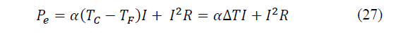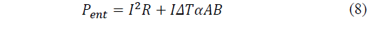 Therefore, when connecting the manufactured cell to a DC power supply, the absorbed power corresponds to one term by the Joule effect and another due by the Peltier effect (eq. 5). From eq. (6)-(7) the absorbed power is determined and presented in eq. (8).