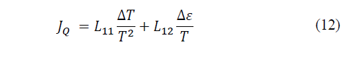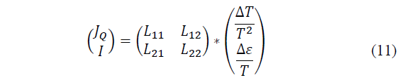 Where: β * I is the Peltier coefficient associated with the system [26], L11, L12 and L22 are called kinetic coefficients and are properties of the medium such as electrical conductivity, thermal conductivity, etc.