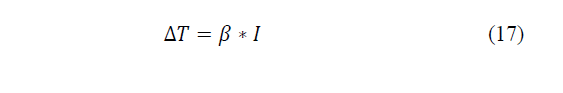 When the current appears, the temperature difference increases, until a steady state is reached, where the total heat flow in the system becomes zero. Substituting that condition in the previous equations is a linear relationship between the temperature difference applied, this makes the intensity that runs through the system as given by eq. (16)-(17):